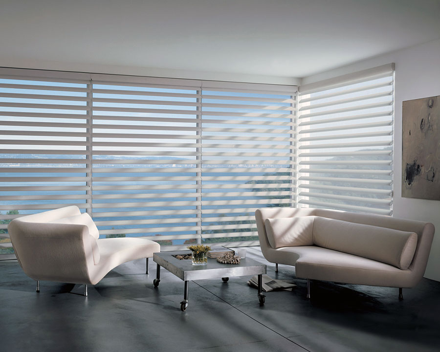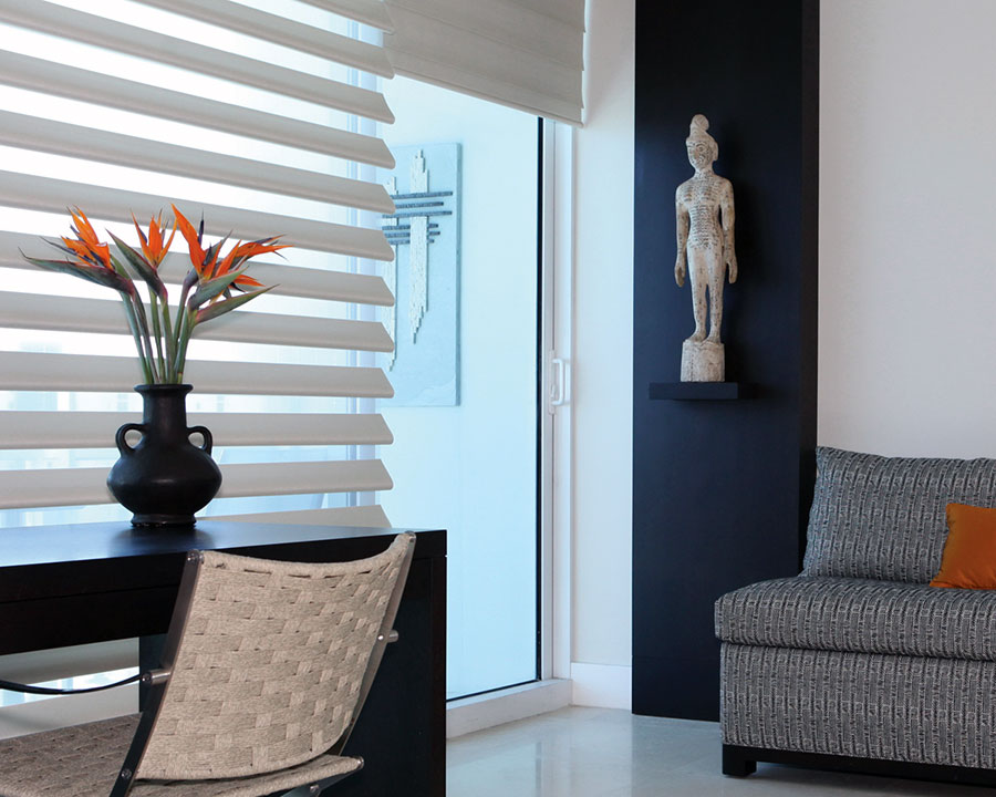 Las Cortinas Piroutte son un novedoso producto que armoniza la decoración en cualquier ambiente, combinando el estilo clásico de su colección de telas con una capa de sheer en la parte posterior, habilitando el control de iluminación. En el interior de las Cortinas Pirouette está el revolucionario sistema InvisiliftTM, que permite que los pliegues de tela se suspendan con estilo, proporcionando contacto visual con el exterior sin obstrucciones cuando la cortina está completamente abierta y total privacidad cuando está cerrada. Su diseño único e insuperable tienen entre su colección de telas diferentes texturas, 2 tamaños de pliegues y una amplia variedad de colores.