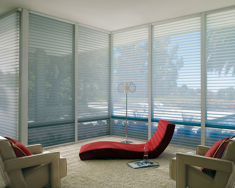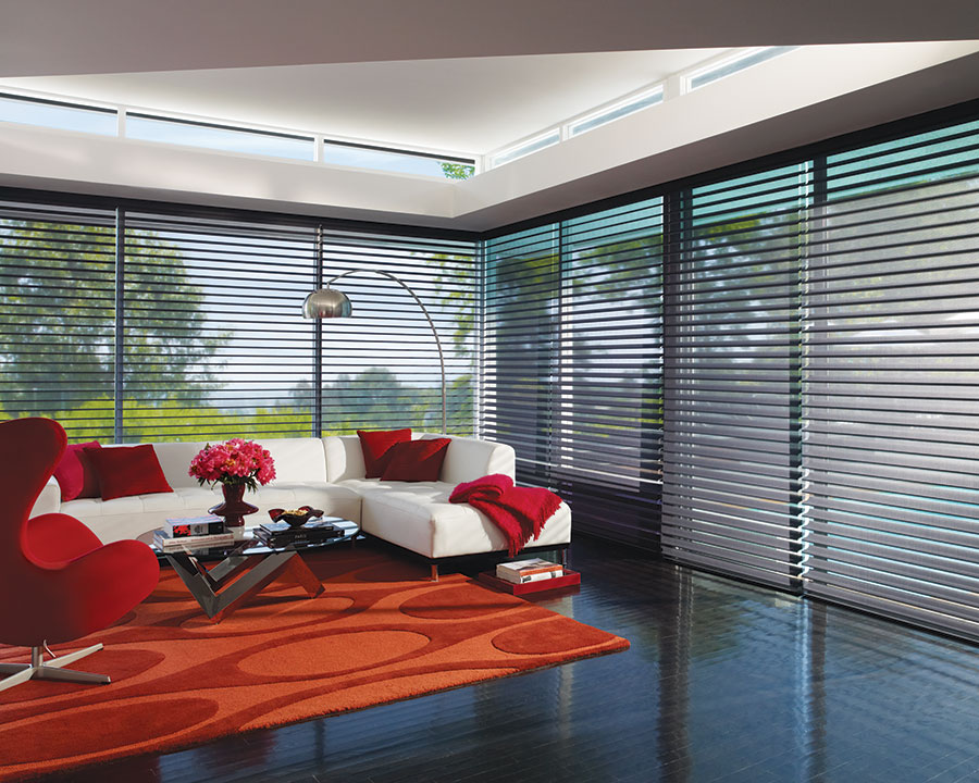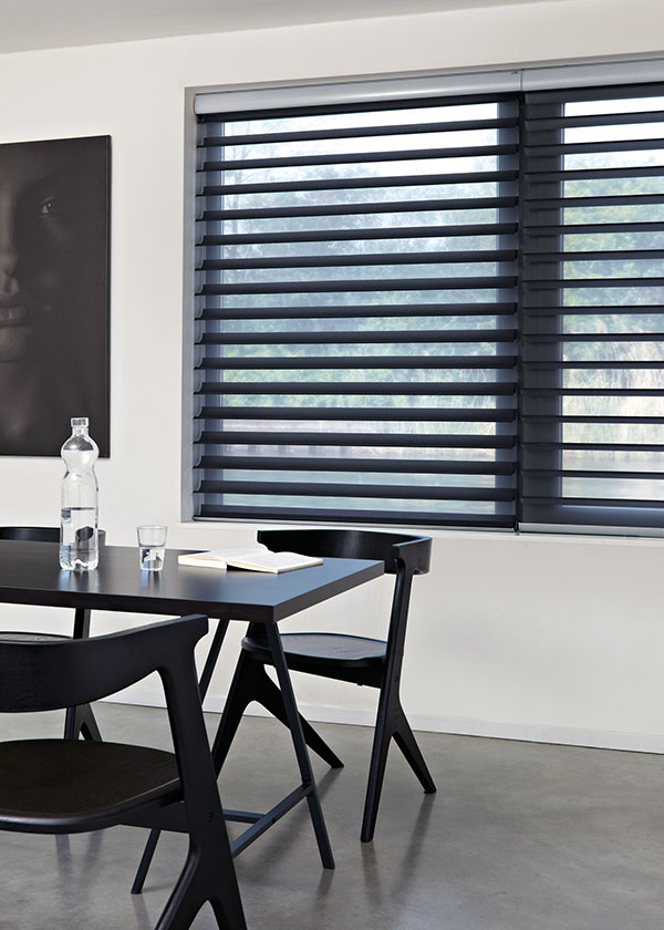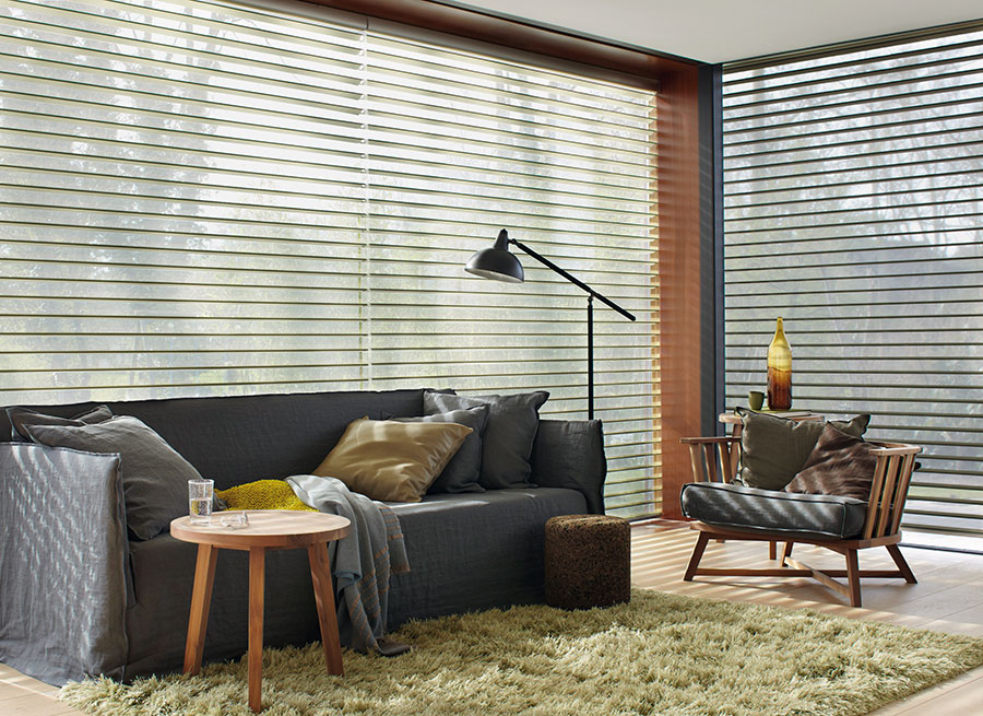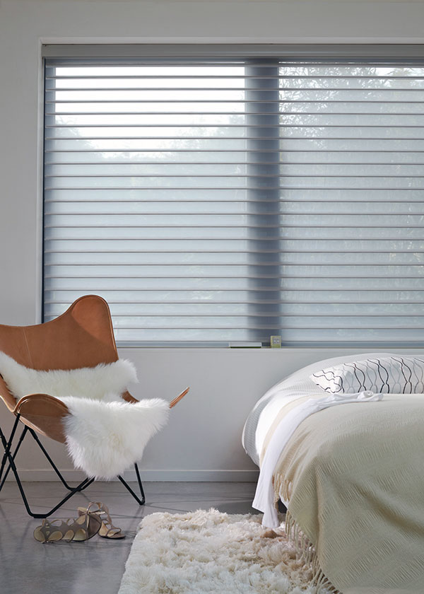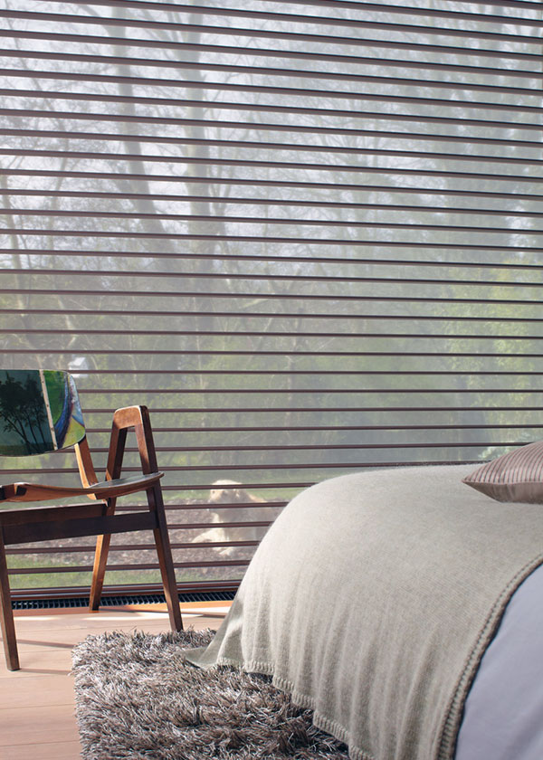 Las Cortinas Silhouette son la máxima expresión de diseño y funcionalidad. Su colección totalmente renovada resalta telas con texturas y ondulaciones impresas sobre sus tejidos, que con el paso de la luz se traducen en delicadas siluetas, manteniendo una nitidez absoluta en el contacto visual con el exterior. La tela involucra dos capas diferentes de velo unidas entre sí por láminas de poliéster tejido, ubicadas en posición horizontal, que giran proporcionando el nivel de privacidad requerido.