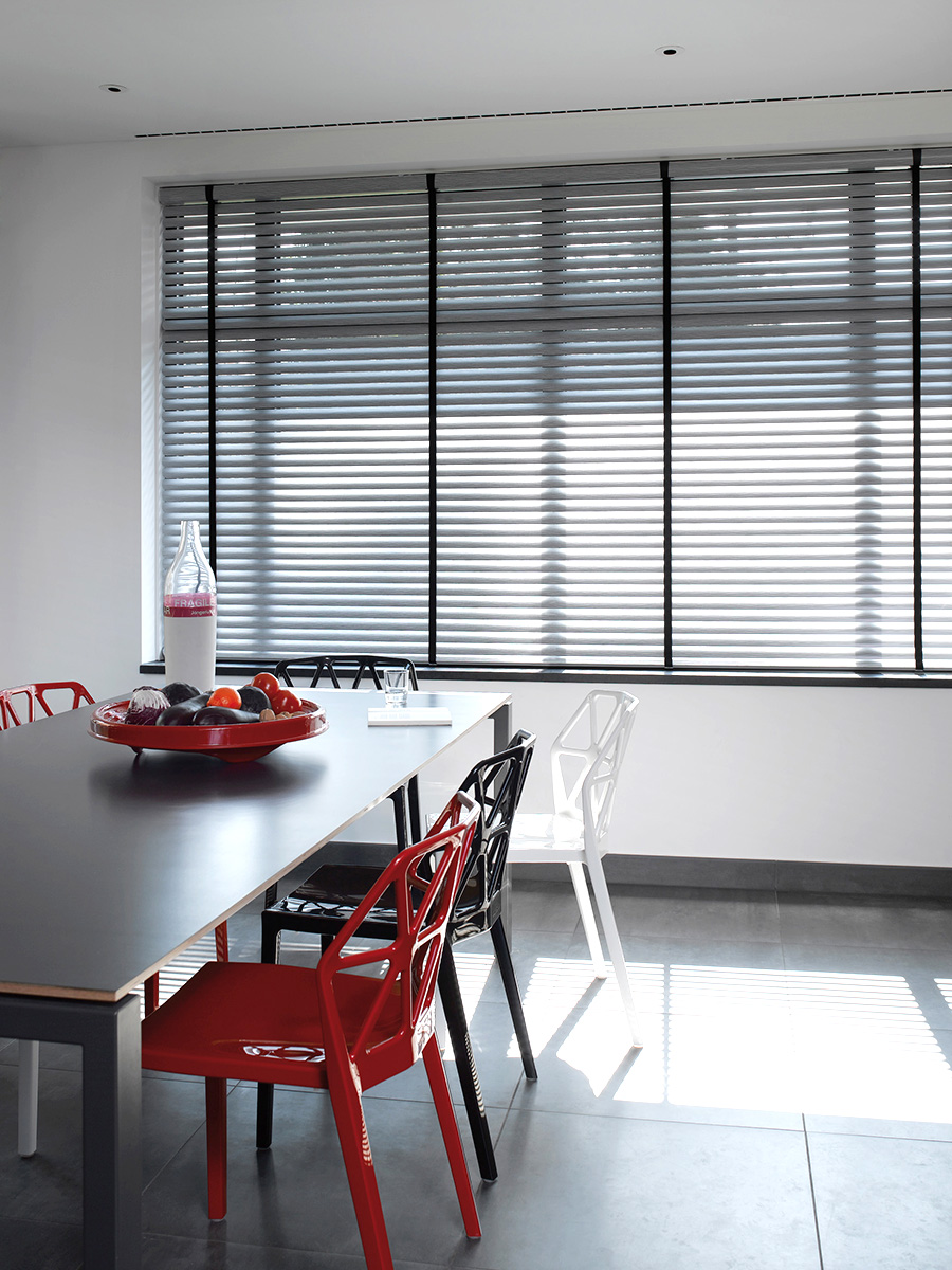 Las persianas de aluminio son la línea más tradicional en nuestro portafolio, cumplen con las 4 características fundamentales, visibilidad, funcionalidad, decoración y privacidad; recomendadas para: cocinas, zona de ropas, baños y oficinas. Variedad en colores y diseño lisas, cepilladas y perforadas (25mm y 50 mm). 3 años de garantía.